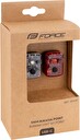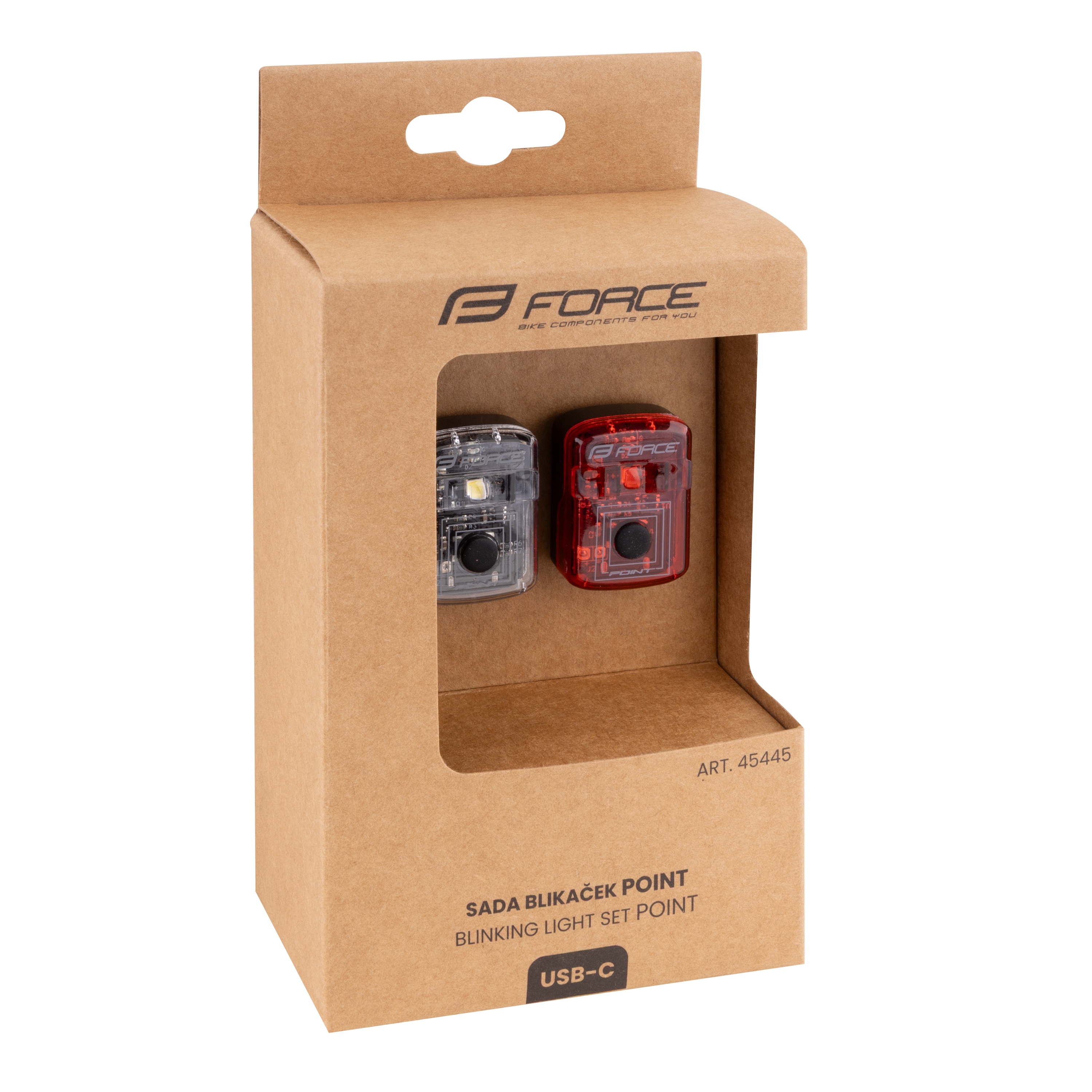 výkonné LED diody: přední bílá + červená zadní funkce: svícení + blikání viditelnost až 100m, vhodné i pro jízdu ve dne vyrobeno dle německého standardu - rozsah úhlu svitu 240° univerzální elastický silikonový držák s nastavitelným úhlem blikačku lze upnout ve vodorovné i svislé pozici klip na oblečení lze zakoupit pod kódem 4516903 baterie: integrovaná Li-Pol 3.7V 240mAh, nabíjení přes USB-C výdrž: 3-8h (dle zvoleného režimu) včetně indikace stavu baterie a nabíjení, doba nabíjení: 2-3h velikost: délka: 33,5mm, šířka: 24,5mm, výška: 13mm voděodolnost: IPX4 proti stříkající vodě - voda stříká na zařízení ze všech úhlů, při tlaku 50–150 kPa v množství 10 litrů za minutu po dobu nejméně 5 minut hmotnost včetně držáku: přední 29g, zadní 29g, materiál: plast baleno v krabičce FORCE